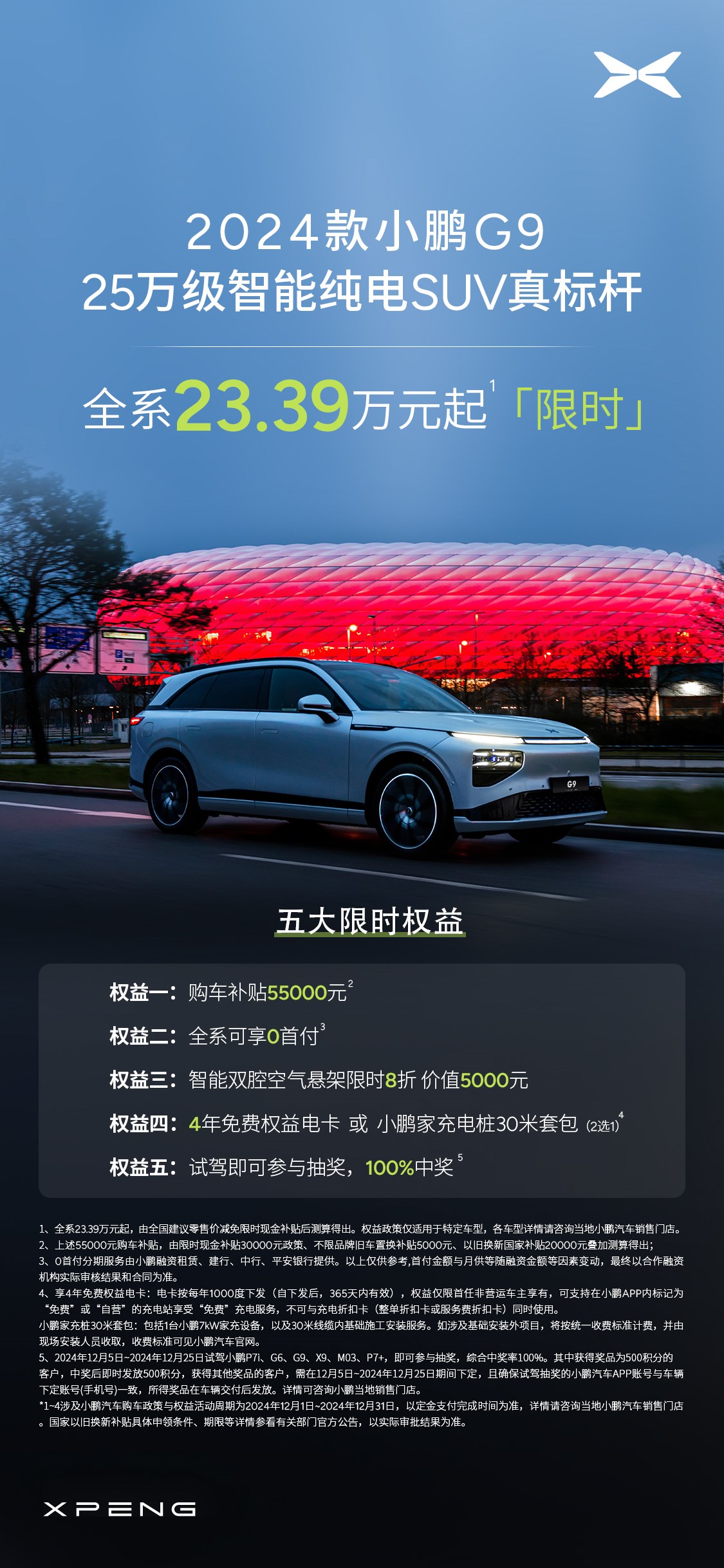不仅如此,小鹏G9现已开启“双十二”史上最大钜惠政策,至高可享6万元补贴,全系23.39万起售的价格,非常适合年底想要“抄底”入的小伙伴们。那么究竟小鹏G9买哪款配置更合适呢?咱们今天分析一波!